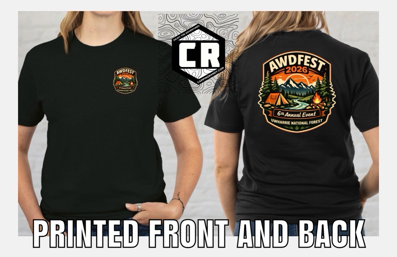 Same new location as last year. Still near Elderado Outpost but in a hidden private area. This is your ticket for one vehicle to AWDFEST October 16th to 18th. Includes camping, trail pass, raffle, one tshirt & sticker. Please select your shirt size. This is boondock camping so come prepared. No electricity however there will be hot showers and real bathrooms with a pavilion on site. Location is last years, however hidden near the Eldorado OutPost. Bring hot, warm, cold, and rain weather clothes. We’ve woke up to frost. Rain or shine, we are doing this!