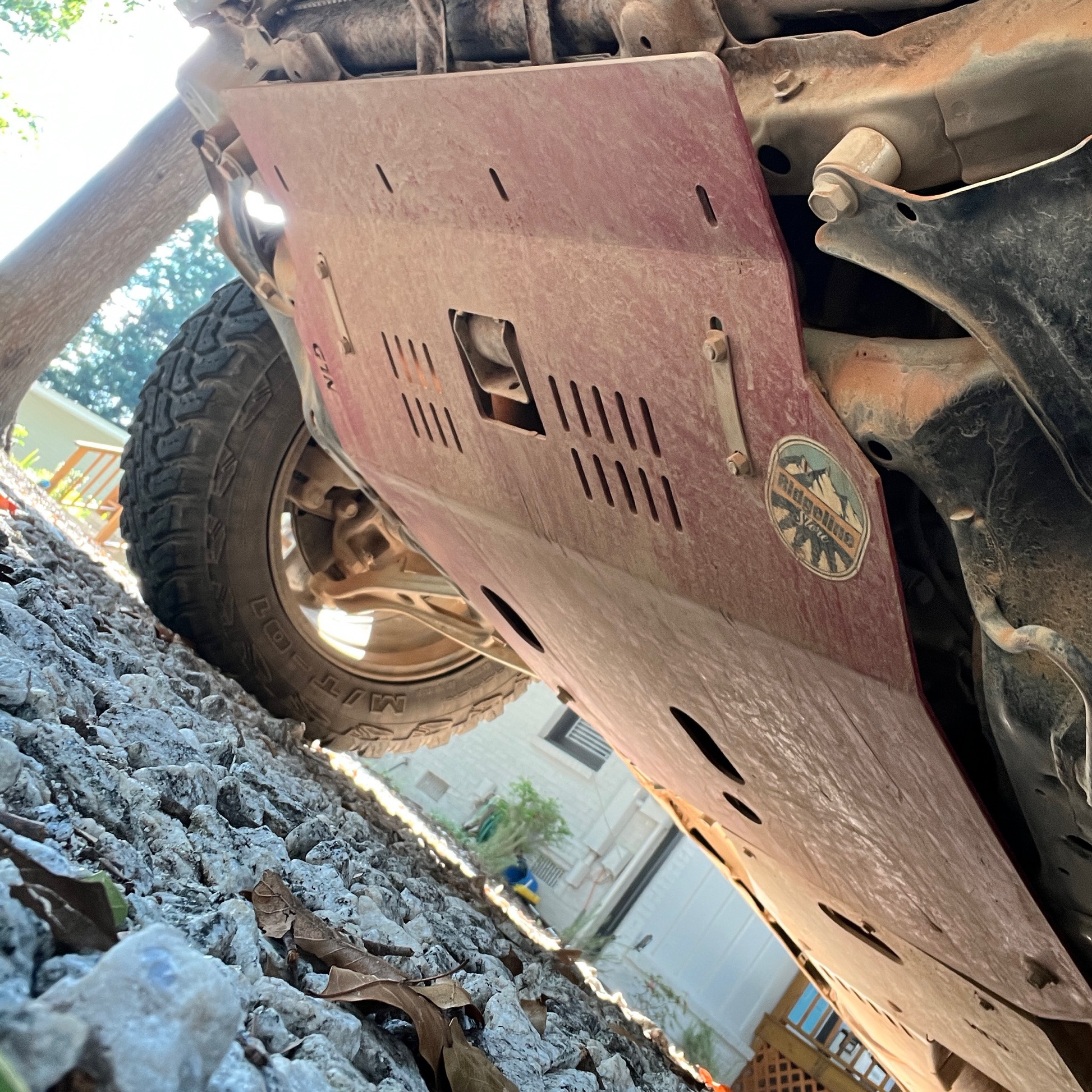Honda Front Skid Plate. Plate is made of 3/16" 5052 raw aluminum and has service holes for both engine and transfer case services. Updated design provide greater coverage for your Truck or SUV. Also added u-bolt mounts for the hardcore guys. U-bolt is 2.5" ID and 3.25" long.