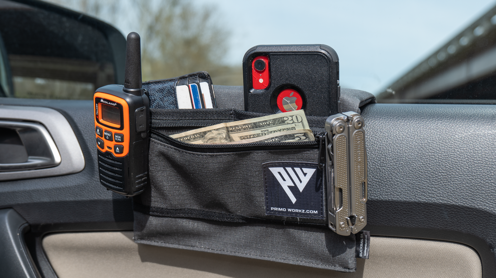 Instantly add an Armrest with extra storage and a Cup Holder to any vehicle.