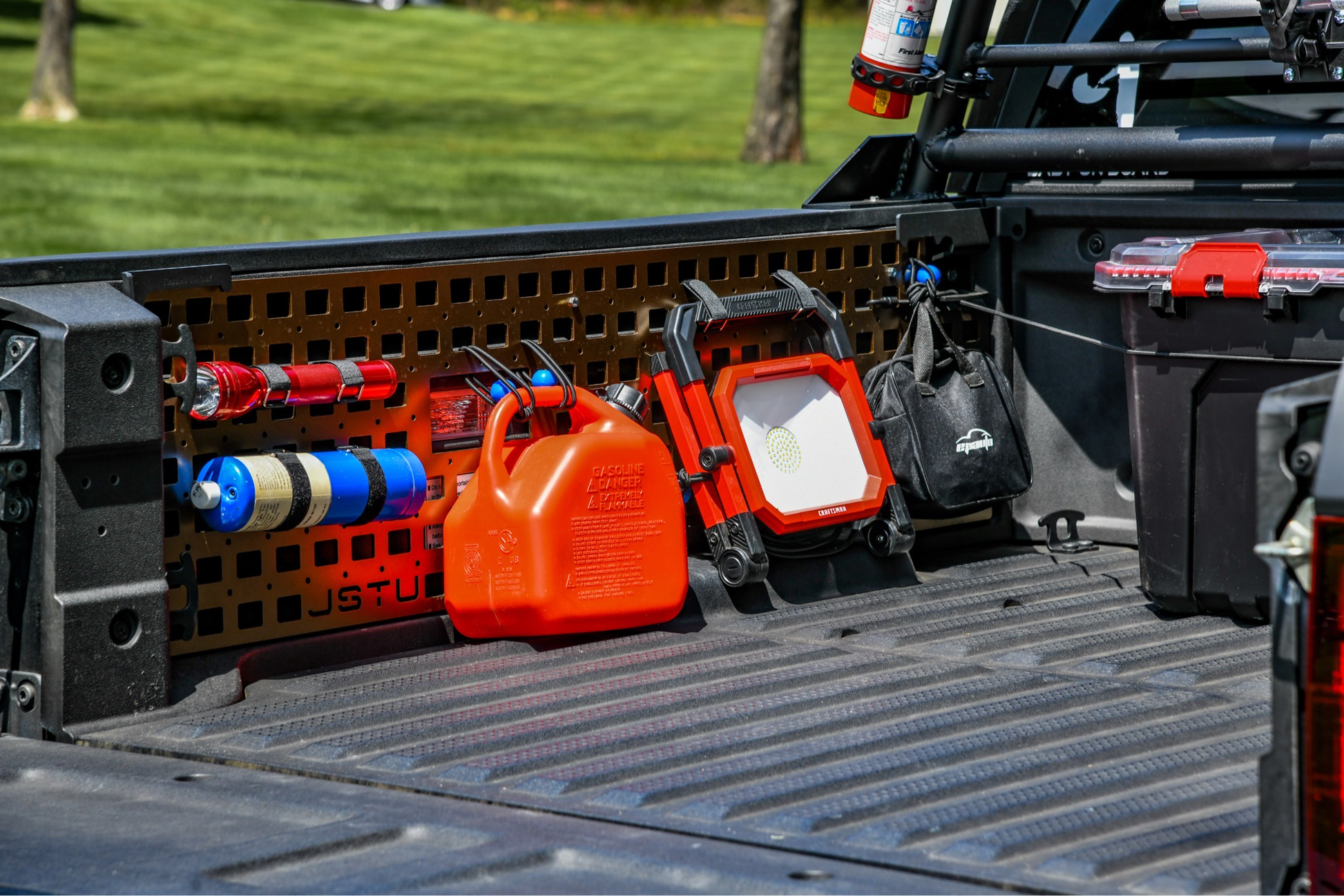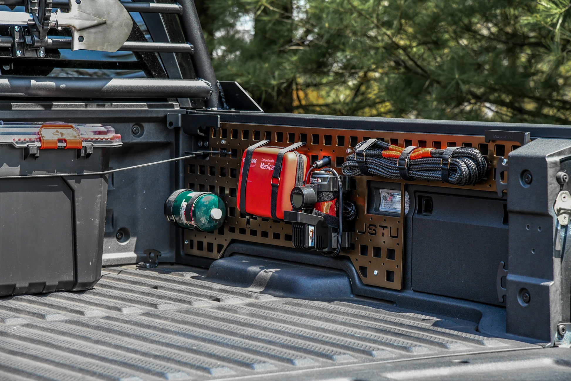 With the Jstu Elite’s Molle Panels, you can mount a huge variety of gear to the Iinner bed walls of your truck. Those same items could be rolling/sliding/crashing around inside the bed – damaging the item and/or your truck! Use the grid to mount straps, brackets, and anything else you can think of.